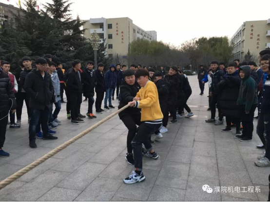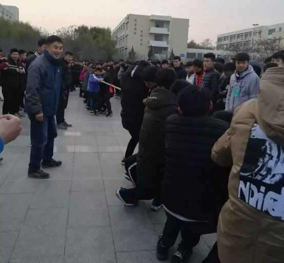 2017年11月29日下午,踏着冬的节奏,和着冬的交响。为了丰富同学们的课余生活,增强同学们的身体素质,培养同学们的情感沟通。濮阳职业技术学院图书馆前空地上人山人海,热闹非凡。一场别开生面的拔河比赛在此举行。