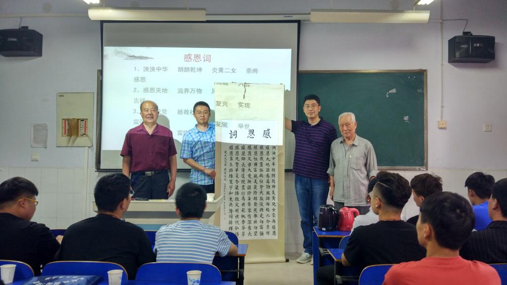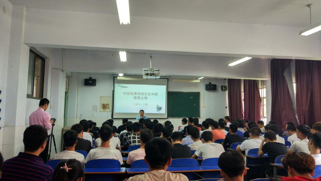 丁振老师以通俗易懂的语言讲述了孝文化的发展进程及重要意义。他指出,孝最初从侍奉父母开始,然后效力于国君,最终报效国家、建功立业,功成名就。此外,他还着重强调了同学们应学会感恩父母、感恩祖国,从而孝敬父母、报效祖国,成为一个对社会有用的人。