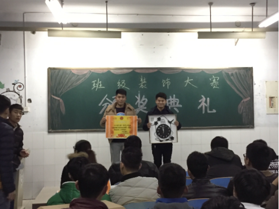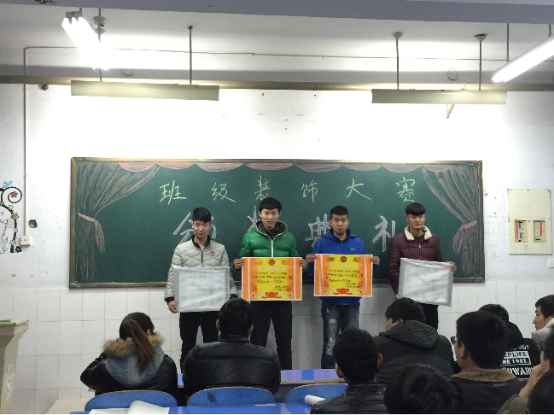 2015年12月8日,濮阳职业技术学院机电工程系举办了“班级装饰”评比活动,为了进一步促进我校校园文化与我系文明建设,营造一种良好的自律、自我教育的整体文明氛围与风气,引导在校学生自树立当代大学生的良好风范和形象,提升自身文明修养与综合素质。
