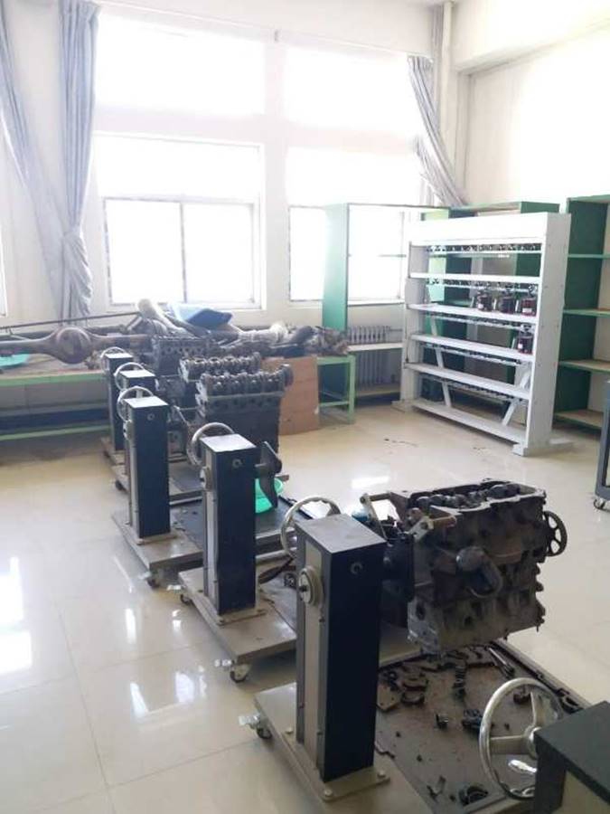 该实训室主要配备电控发动机拆装运行实验台,可满足对发动机的结构、原理、拆装、检测和调试的教学要求,并可进行汽车的专业考核和培训。可进行发动机电控系统检修、各传感器的检测、电控系统的故障演示等实验项目,通过实训,让学生能很好地理解和掌握发动机电控系统的结构、检修方面的基本知识,为从事发动机电控系统的维修工作打下良好的基础。