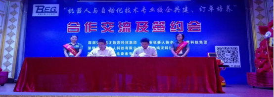 根据联合办学协议内容,校企双方本着“优势互补、资源共享、互惠双赢、共同发展”的原则,将建立长期、紧密的合作关系。根据“十八届五中全会”及“中国智能制造2025”会议精神,机器人与自动化技术专业必将受到青睐。我院机电工程系与智邦英才教育科技集团将实行校企共建、订单培养机器人与自动化技术专业,智邦英才教育科技集团派遣企业工程师参与学院教学、教学改革、教材编写、学生职业素质提升等工作。